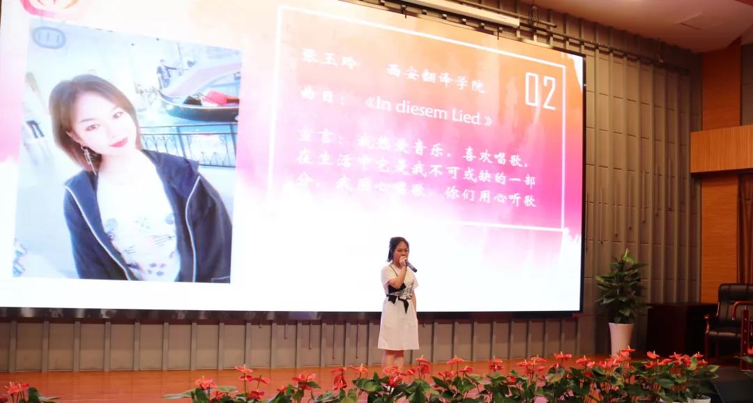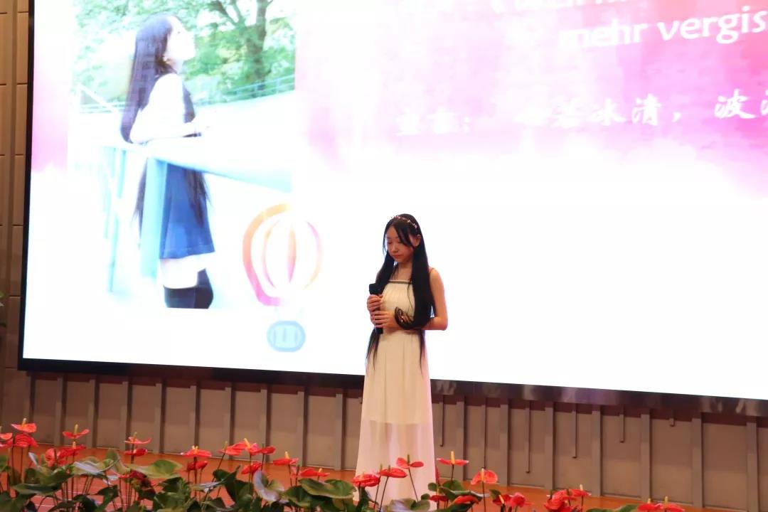 第二位上场的是来自西安翻译学院的张玉玲,她演绎了一首我们耳熟能详的中文歌的德语版——《In diesem Lied》。她的歌声清亮而高昂,赢得了无数掌声与喝彩。