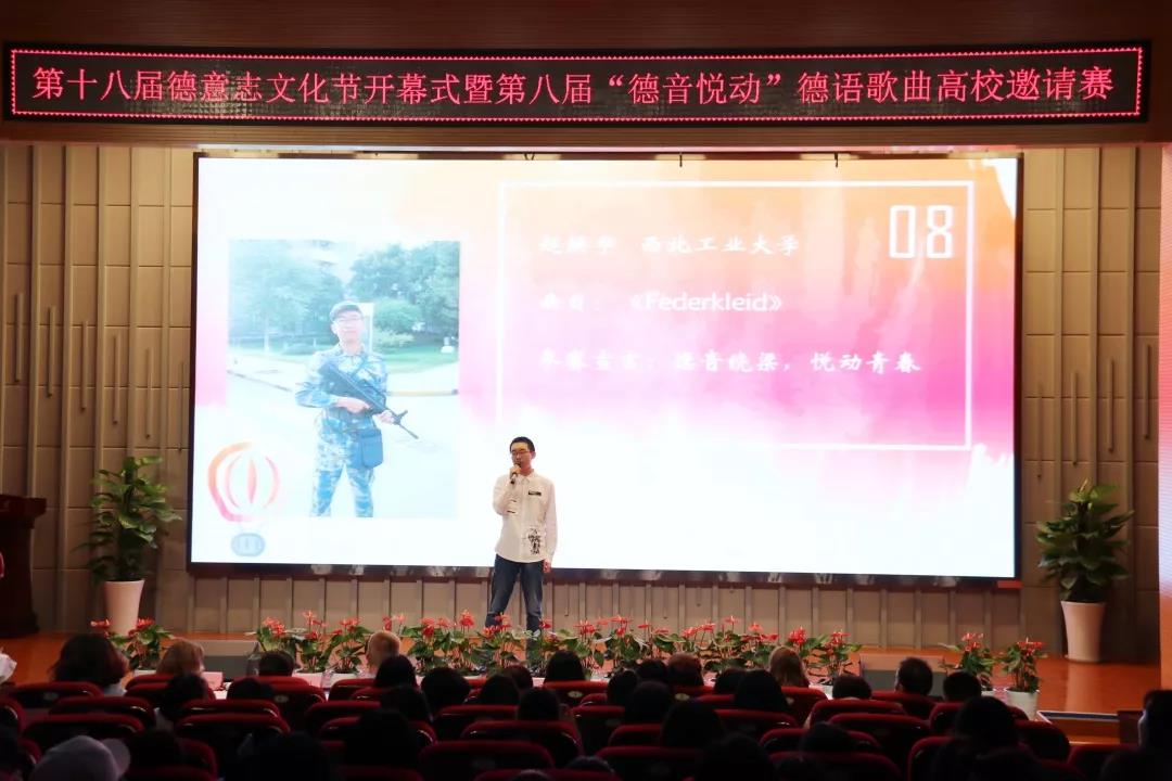 德语学院第十八届德意志文化节开幕式暨第八届“德音悦动”德语歌曲大赛高校邀请赛在JA111举行。西安翻译学院德语系教师马贝、郝丽,奈飞工厂