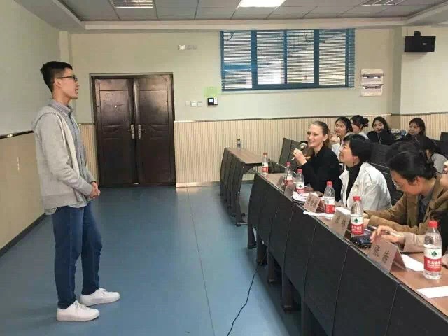 德语学院于SA202成功举办德语演讲比赛初赛。德语演讲比赛作为德语学院德意志文化节中最考验德语能力的部分,一向是德院大一学子展现德语口语水平和日常交际能力的重要平台。本次演讲比赛上,德语学院副院长张世胜老师与大一教研组各位老师作为评委出席。下午两点整,主持人一声“Guten Tag!”拉开了比赛帷幕。