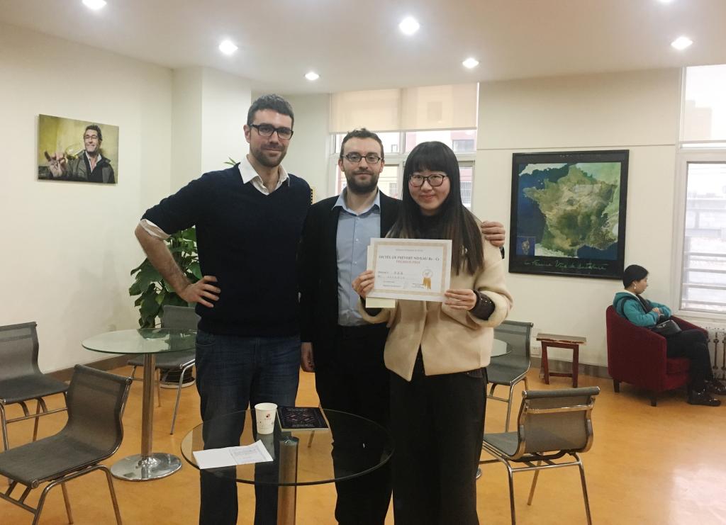 代表队一举荣获4项荣誉:法语专业研究生潘鑫鑫获B2/C1组第一名,2013级徐源源荣获B2/C1组第二名。2015级周蓓蕾获A2/B1组第二名,2015级雷雪纯获A2/B1组第三名。