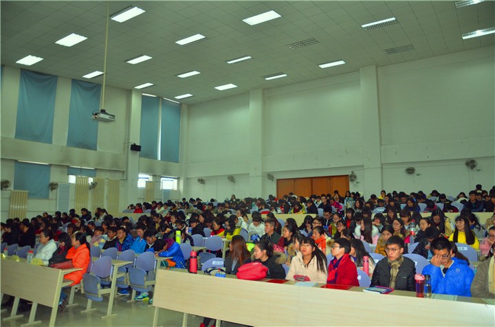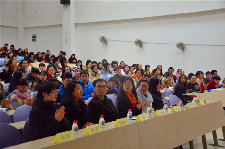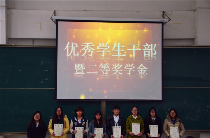 随后,各位老师依次为2014-2015学年先进集体、国家奖学金暨三好学生标兵、国家励志奖学金、优秀学生干部暨二等奖学金、三好学生暨二等奖学金、三等奖学金及文体优秀三等奖学金进行颁奖。国家奖学金获得者2012级西语一班张豪同学代表所有获奖同学进行发言。他虽远在国外,但仍然通过视频的方式对学院领导、老师的栽培和教育以及同学们的热情帮助表达了衷心的感谢,在分享自己成长经历和成功经验的同时,他还鼓励学弟学妹们坚持实践,勇攀高峰。