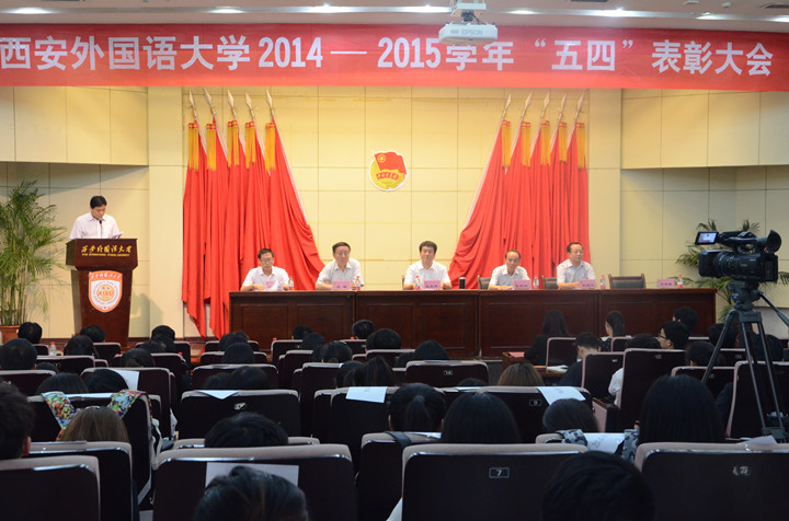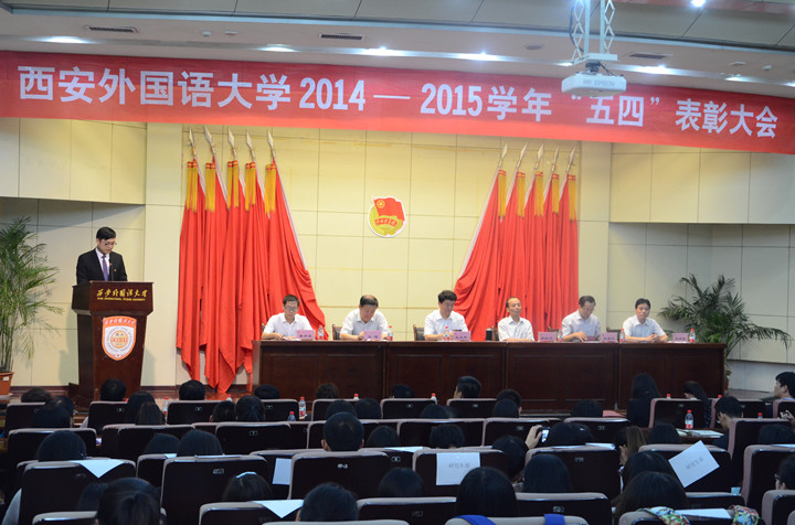 2015年5月13日下午,我校2014-2015学年“五四”表彰大会在行政楼报告厅隆重举行,校党政领导王天平、张良弼、王峰、赵国华、党争胜出席了大会,宣传部、学工部负责人、各学院(部)党委(党总支)书记及团工委书记、获奖师生代表参加了本次大会。本次会议由校团委书记单升军主持。