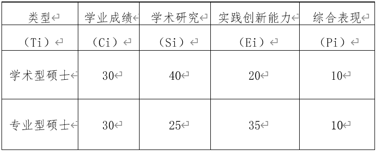 4.考核项目分为“学业成绩”“学术科研”“实践创新” “社会服务”,总权重相加为100。