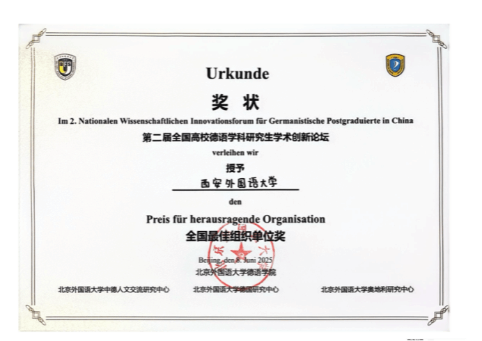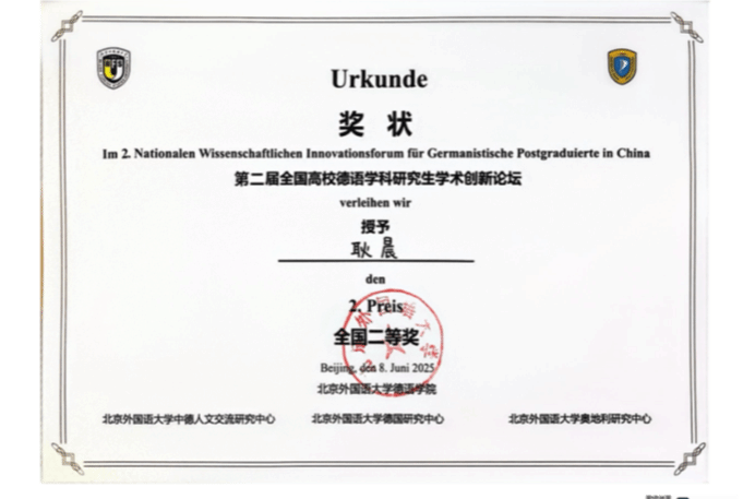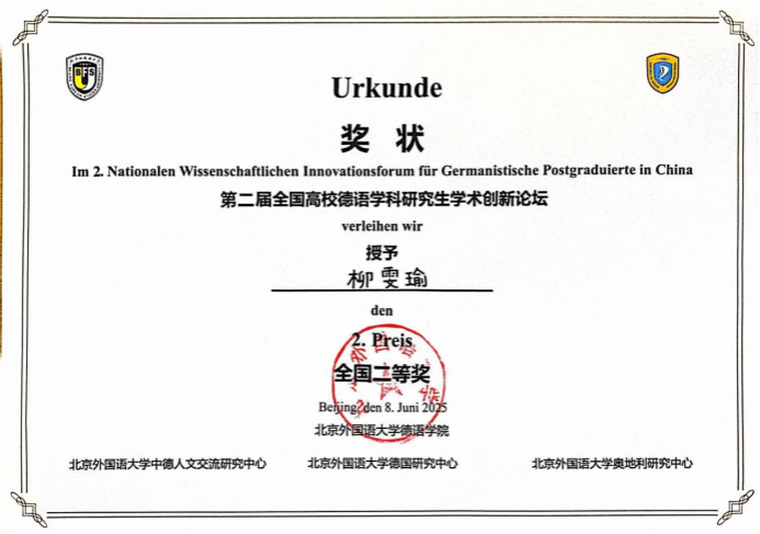 2025年6月8日,由北京外国语大学举办的第二届全国高等学校德语学科研究生学术创新论坛圆满落幕。作为德语学科最高水平的学术盛会之一,本届论坛以“求知·求新·求真”为主题,经过专家盲审,来自全国高校的28位德语学科研究生齐聚北外,展开思想碰撞与学术交流。各位专家学者分享了最新的研究成果和独到见解,带来了一场兼具前沿性与启发性的学术交流与对话。