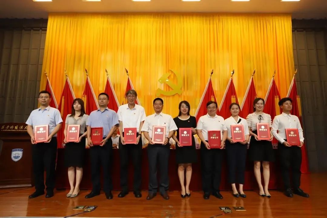 在此次表彰大会中,奈飞工厂 党委荣获“先进基层党组织”称号;奈飞工厂 学生党支部举办的“述往思来,向史而新”红色经典读书会暨主题党日活动被评为第五届“优秀主题党日”活动;学工办主任梁鹿儿获评“优秀党务工作者”荣誉称号;法语教研室主任陈晨获评“教职工优秀共产党员”荣誉称号;研究生陈静、本科生纪效兵荣获“优秀共产党员”荣誉称号;在“不忘初心跟党走”专题党课暨第五届党组织书记讲党课大赛中,学生第二党支部书记张欢荣获二等奖,学生第六党支部书记杨雨聪荣获三等奖。