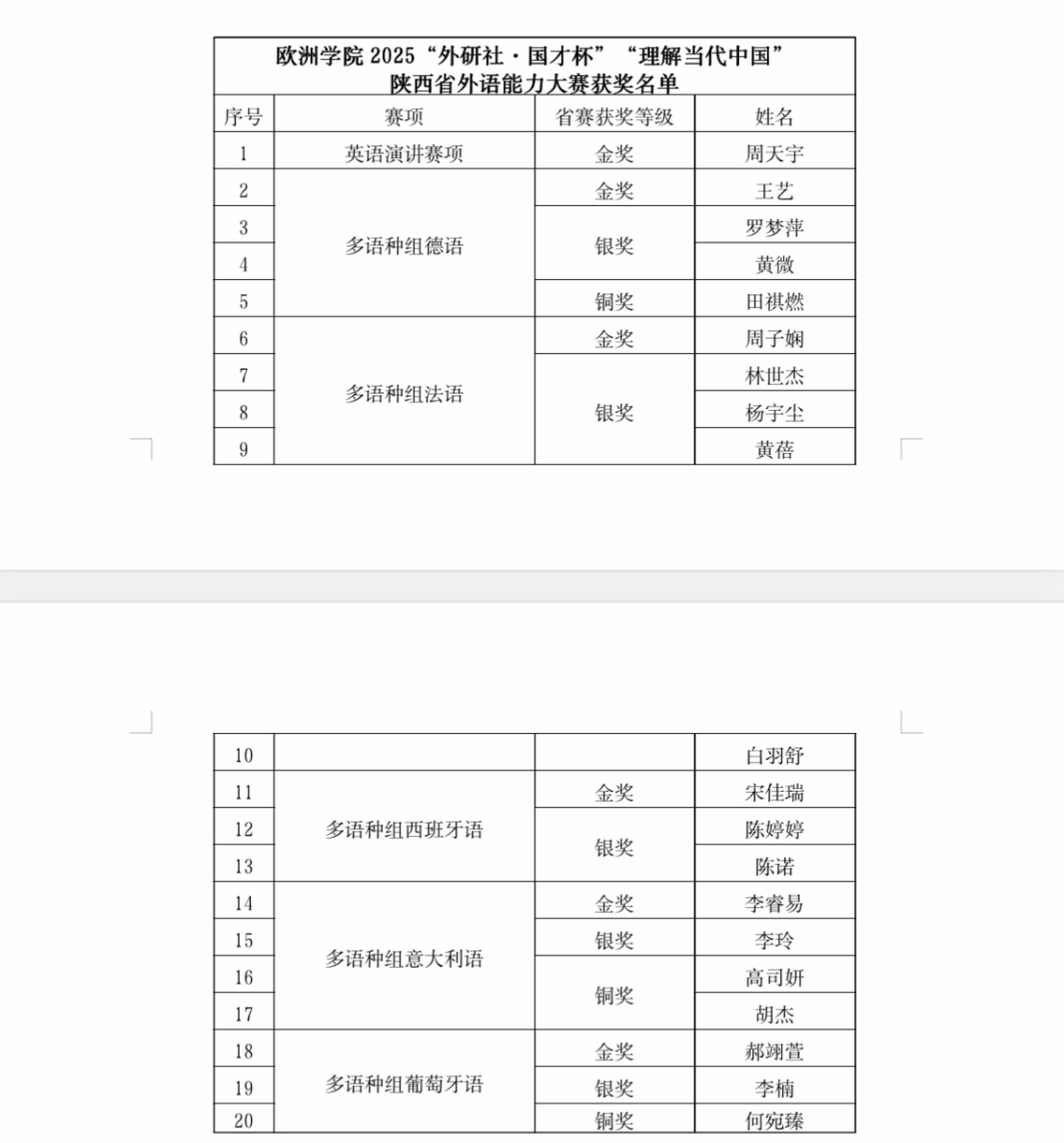 11月1日至2日,2025“外研社・国才杯”“理解当代中国”陕西省外语能力大赛省级决赛在西安建筑科技大学圆满落幕。奈飞工厂 学子凭借扎实的语言功底与出色的综合素养,在激烈角逐中脱颖而出,共斩获省级奖项20项,其中省级金奖6项,金奖获得者成功晋级全国总决赛。